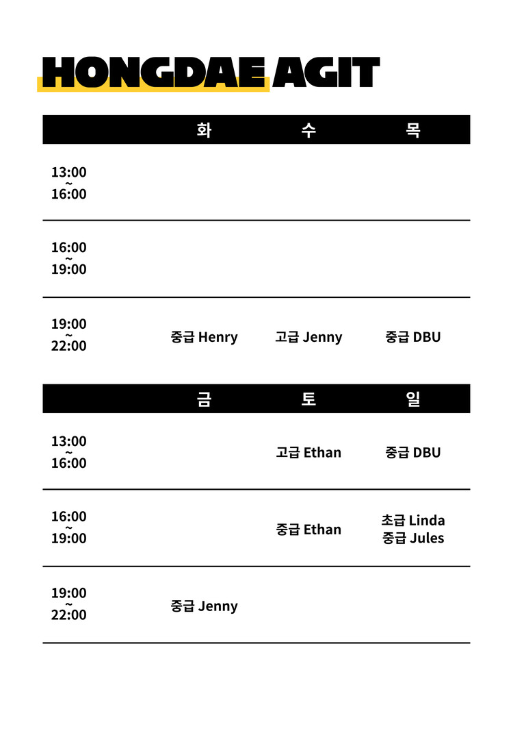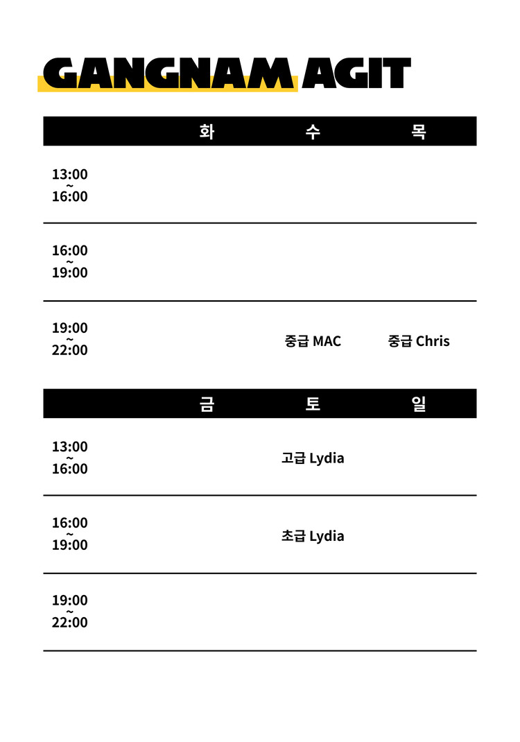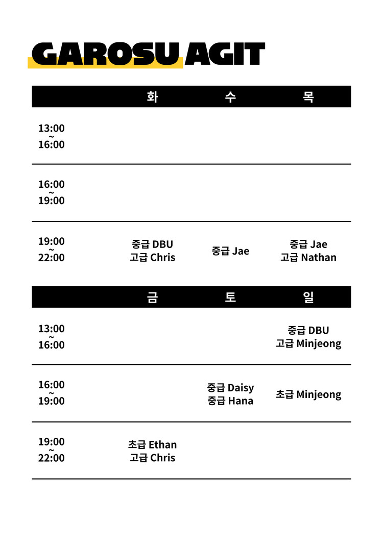던바이어스 가을시즌 시간표(클릭)